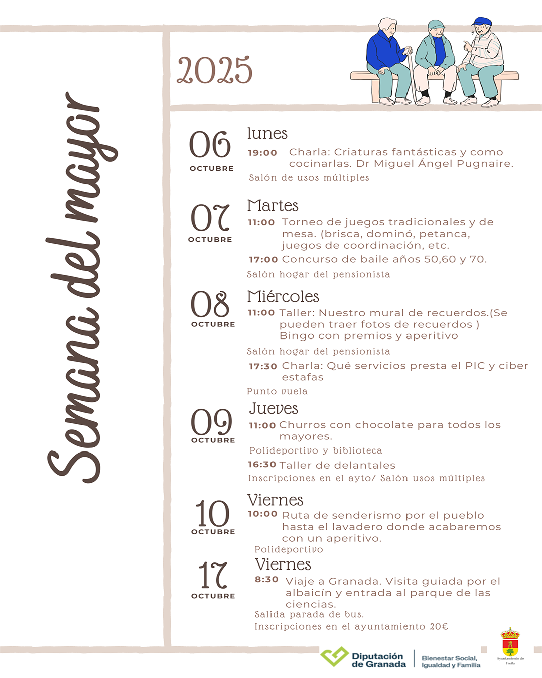 Del 6 al 10 y el 17 de octubre, ven a disfrutar de una semana llena de actividades, risas y buenos momentos para nuestros mayores.