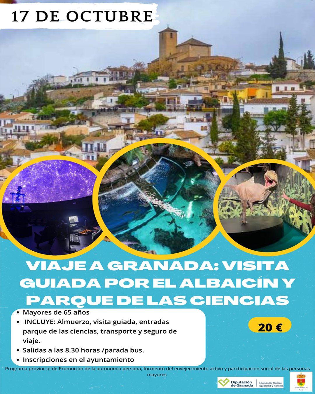 El 17 de octubre disfruta de una excursión inolvidable con visita guiada por el mágico Albaicín y el fascinante Parque de las Ciencias.